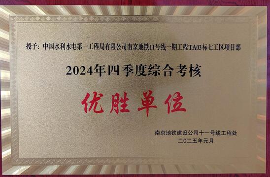日前,公司南京地铁11号线项目部以保安全、保质量、保进度、完美履约的实力荣获南京地铁建设有限责任公司2024年四季度综合考核“优胜单位”称号。 2021年以来,项目部全体人员坚持将安全生产放在首位,把工程质量管理作为项目部工作核心,本着以工程质量保安全,以安全保施工进度的工作思路,充分克服施工时间短、现场地质复杂等一系列施工难题,并建立“创新工作室”不断增强项目职工的自主创新能力和技能素质,加快培养一批技能型、专家型、创新型人才团队,充分发挥专业技术管理骨干在项目生产经营工作中的示范引领作用,以脚踏实地的实干精神、齐心协力的团结精神有序地推进项目各项工作。 2024年,在南京地铁11号线全线土建施工攻坚克难的关键时期,水电一局项目部始终秉持高度的责任心和使命感,严格执行工程管理的各项要求,建立健全安全管理制度,为南京地铁11号线的安全高效建设筑起了坚实的防线。实现了南京11号线地下最长车站封顶、成功下穿既有地铁3号线——“年度南京地铁建设十大风险源之一”、首次采用“水下接收”技术实现盾构区间双线贯通等一系列目标任务,展示了水电一局在地铁建设领域的强大实力和深厚底蕴,为南京地铁建设再立新功。 |