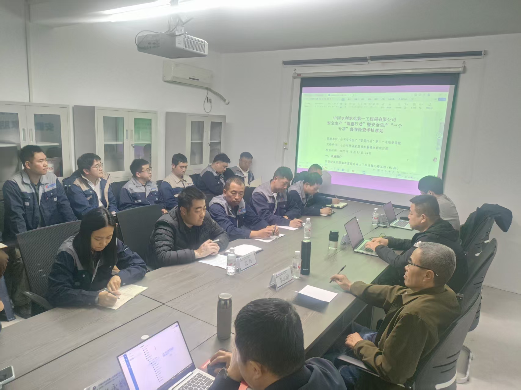 11月26日,公司党委委员、副总经理李志刚带队赴安徽绩溪家朋抽水蓄能电站项目部开展“雷霆行动”专项督查,围绕工程进展、安全管理、质量控制及后续施工安排等工作进行调研指导。 李志刚一行深入施工一线,实地调研工程整体进度、关键施工细节及项目管理落实情况,全面掌握项目当前建设进展、存在的难点问题及下一步推进计划。 督导检查组紧扣公司“雷霆行动”暨安全生产“三个专项”工作部署,围绕“10项严查”及46项排查要点,对项目关键区域与重点环节开展了系统排查,重点检查了1、2号箱涵的安全防护措施以及山上便道挖掘机作业规范与警示设置情况,对高风险作业、交叉作业管控、临时用电等重点环节进行了细致核查。并随机抽检8名作业人员进行了验证考试。 李志刚对项目部下一阶段工作提出要求。一要认清安全形势,坚决扛起政治责任。清醒认识岁末年初安全生产的严峻性和特殊性,坚决克服麻痹思想、侥幸心理和松懈情绪,从讲政治的高度狠抓安全生产各项工作,全力维护公司安全稳定大局。二要深化“雷霆行动”,推动措施落地见效。坚持标准不降、力度不减,推动“雷霆行动”走深走实;全面开展安全生产“三个专项”行动,实施全层级、全业务、全流程风险隐患排查,针对冬季施工特点强化现场安全管控,确保问题隐患动态清零、各项防护措施执行到位。三要严控质量进度,打造精品工程。突出技术先行,提前研究并严格审批施工方案,特别是危大、超危大工程方案;围绕关键线路强化施工组织,实行动态进度管控与纠偏;严格把控冬季施工混凝土、洞挖支护等关键工序质量,严格按设计要求落实安全监测,全力打造品质标杆。四要聚焦能力建设,锻造过硬队伍。系统开展专业化培训,精准识别团队在新技术、新工艺方面的能力短板,通过“理论+实操+案例”多元模式,快速提升全员专业素养与实战能力,打造一支技术过硬、作风扎实的骨干团队,为项目高质量推进提供坚实人才支撑。 |