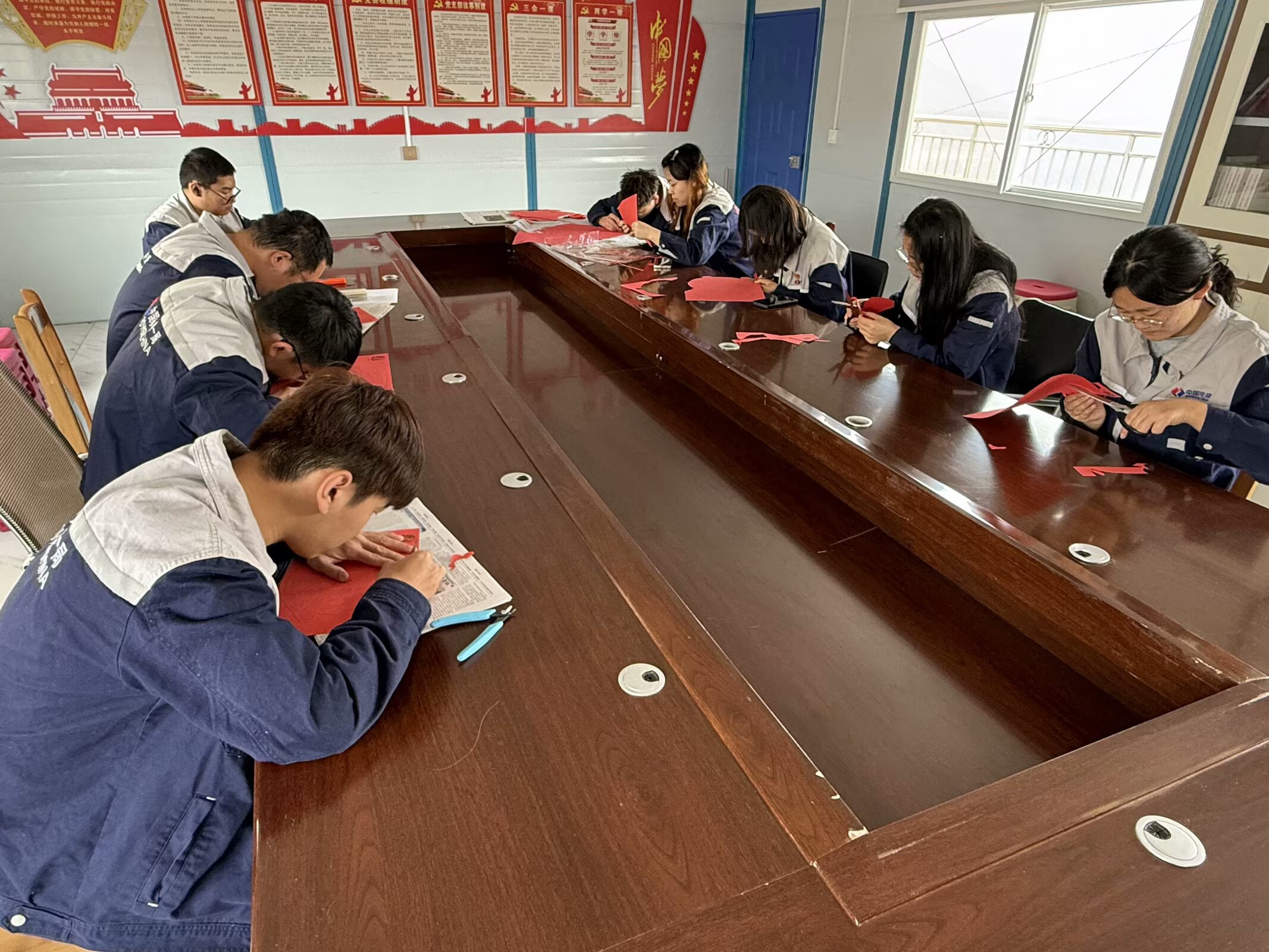12月15日,为进一步强化项目部干部职工的廉洁自律意识,营造风清气正的廉政文化氛围,滇中引水项目部精心组织开展“剪纸倡廉洁 巧手颂清风”主题党日活动,旨在通过传统剪纸艺术这一群众喜闻乐见的形式,将廉洁文化以生动鲜活的方式融入党员干部的日常工作与思想深处。 千剪万裁“廉”花开,清风一缕剪中来。活动现场,一剪一刀中,一幅幅寓意深刻的廉洁剪纸作品逐渐成形。有的职工剪出了“莲花”图案,以“莲”喻“廉”,花瓣舒展间透着出淤泥而不染的高洁;有的剪出了“清正廉明”四个遒劲有力的大字,搭配着展翅的仙鹤,象征着廉洁奉公者的品格与追求;还有的将“廉石”“竹节”等元素巧妙融合,借石之坚、竹之节传递廉洁自律、刚正不阿的精神内涵。大家一边专注创作,一边交流着对廉洁文化的理解,在剪刀与红纸的碰撞声中,廉洁理念如春风化雨般浸润人心。党员小吴拿着自己刚完成的“荷风送廉”剪纸,深有感触地说:“以前总觉得廉洁教育比较严肃,这次通过剪纸,让我在动手过程中对“廉洁”二字有了更形象、更深刻的认识,今后一定会时刻提醒自己,守住底线,不越红线。” 项目部将持续创新廉洁文化教育形式,把传统艺术与廉政教育深度融合,通过开展更多职工群众喜闻乐见的活动,让廉洁理念在潜移默化中融入日常、深入人心,引导全体干部职工以更加坚定的信念和清正廉洁的作风投身滇中引水工程建设,为打造精品工程、廉洁工程贡献力量。 |