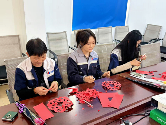 为庆祝第116个“三八”国际劳动妇女节,进一步凝聚巾帼力量、丰富女职工精神文化生活,3月8日,临沧区域指挥部组织开展“光影励巾帼·巧手绽芳华”三八节主题活动,通过观看励志纪录片、体验传统剪纸艺术,让全体女职工在精神滋养与文化体验中欢度节日。 活动伊始,全体女职工共同观看了《她与时代同行》纪录片。影片聚焦新时代各行各业女性奋斗者的真实故事,生动展现了女性自尊、自信、自立、自强的精神风貌,诠释了“她力量”在时代发展中的责任与担当。观影过程中,大家认真聆听、深受触动,在榜样事迹中汲取奋进力量,进一步激发了立足岗位、建功光伏事业的工作热情。 观影结束后,项目组织开展传统剪纸体验活动。活动现场,大家通过观看剪纸教学视频,自主学习折纸、构图、剪刻等基础技巧。大家在剪纸过程中将对生活的热爱、对工作的热忱融入创作。 此次活动,既让女职工们接受了一次深刻的精神洗礼,也在传统手工艺体验中舒缓工作压力、增进团队情谊。大家纷纷表示,将把活动中汲取的精神力量转化为干事创业的动力,以更加饱满的状态投身临沧区域光伏项目建设,在绿色能源发展一线展现巾帼风采、贡献巾帼力量。 |