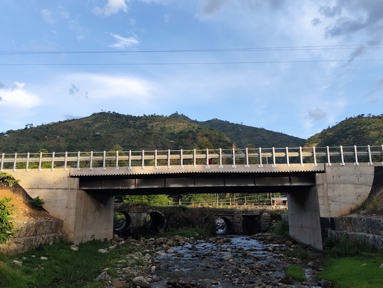 工程做到后期,我们常常驻扎在现场住营地。一天傍晚,我在桥头检查护栏安装情况,忽然看到一个熟悉的身影——这是一位附近村庄的老人,我们都叫他Peter村长。