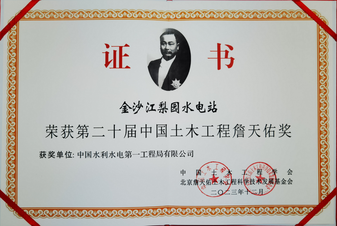 10月22日-23日,中国土木工程学会2024年学术年会、第二十届中国土木工程詹天佑奖颁奖大会在江苏苏州召开,水电一局参建的金沙江梨园水电站荣获詹天佑奖。 詹天佑奖是旨在表彰奖励科技创新与新技术应用成绩显著的土木工程建设项目,是中国土木工程领域科技创新的最高奖项。 梨园水电站位于云南省丽江市玉龙县与迪庆州香格里拉市交界的金沙江中游河段,为金沙江中游河段规划八个梯级中的第三个梯级。梨园水电站是以发电为主、兼顾防洪,并具有库区航运和旅游等综合效益的一等大(Ⅰ)型水电水利工程,枢纽建筑物主要由混凝土面板堆石坝、右岸溢洪道、左岸泄洪冲沙洞、左岸引水系统、地面发电厂房等建筑物组成。电站装机容量2400兆瓦,水电一局主要承担梨园水电站泄洪冲沙洞土建及金属结构安装工程施工任务。 梨园水电站属国家“西电东送”电源点,是我国西部大开发战略的重要组成部分,电站的建成投产对缓解云南电网供需矛盾、推动低碳经济的发展和带动地方经济都具有十分重要的意义,工程获得2021年度“中国电力优质工程”以及2022-2023年度第一批国家优质工程奖等荣誉。 |